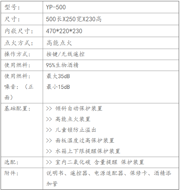 智能酒精壁爐YP-500